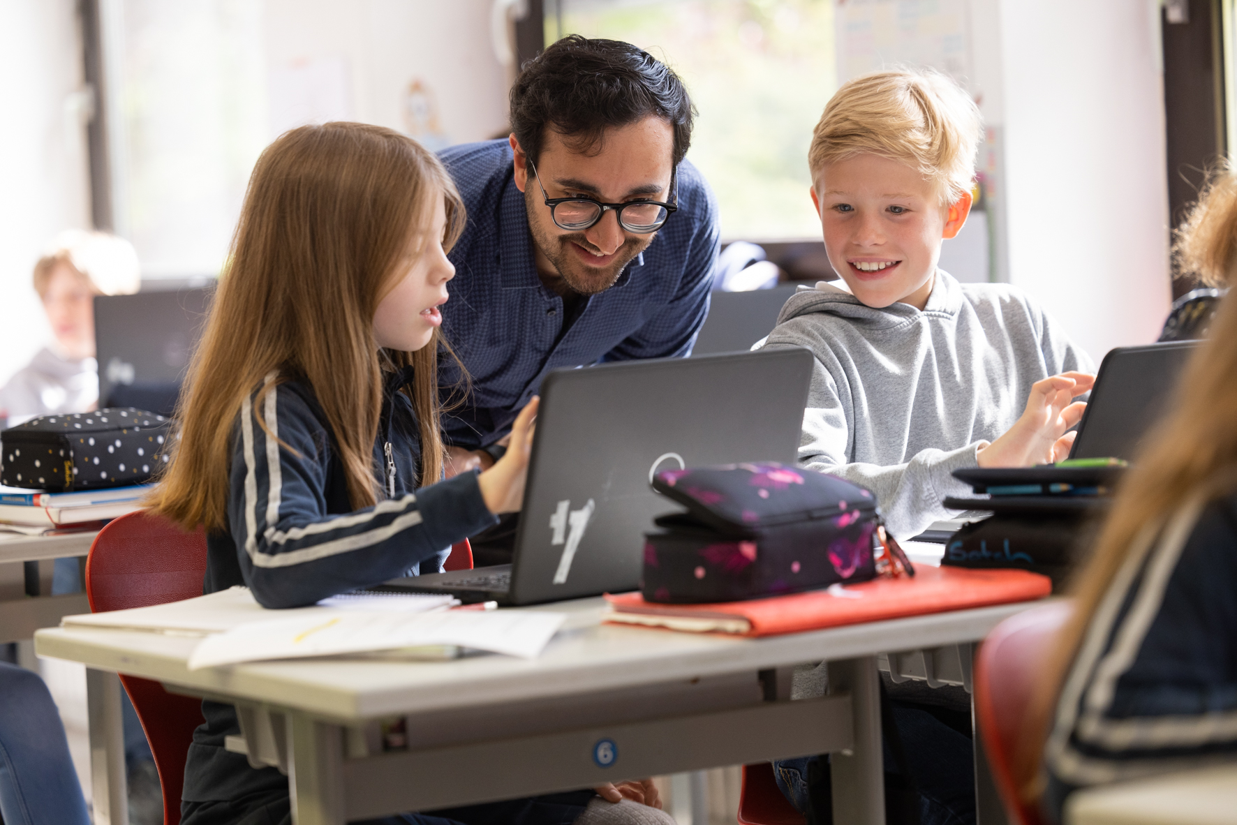 Zusätzlich hat jede Schülerin und jeder Schüler Zugang zu einem eigenen Laptop, um gezielt digitale Kompetenzen zu entwickeln: Texte schreiben, recherchieren, rechnen sowie Präsentationen erstellen sind fester Bestandteil des Unterrichtsalltags.